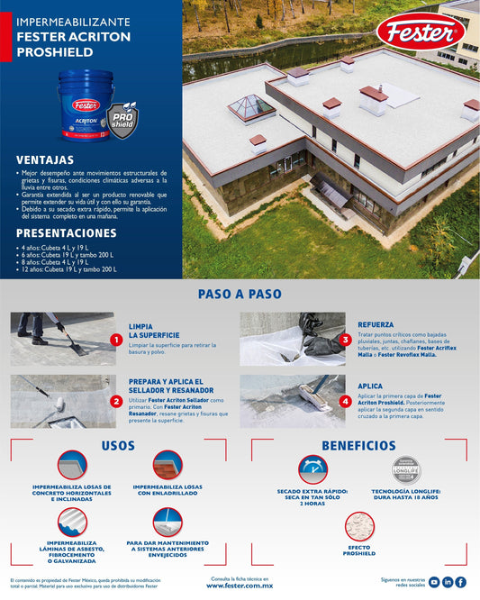 IMPERMEABILIZANTE 4 AÑOS ROJO 19L FESTER ACRITON PROSHIELD MAX