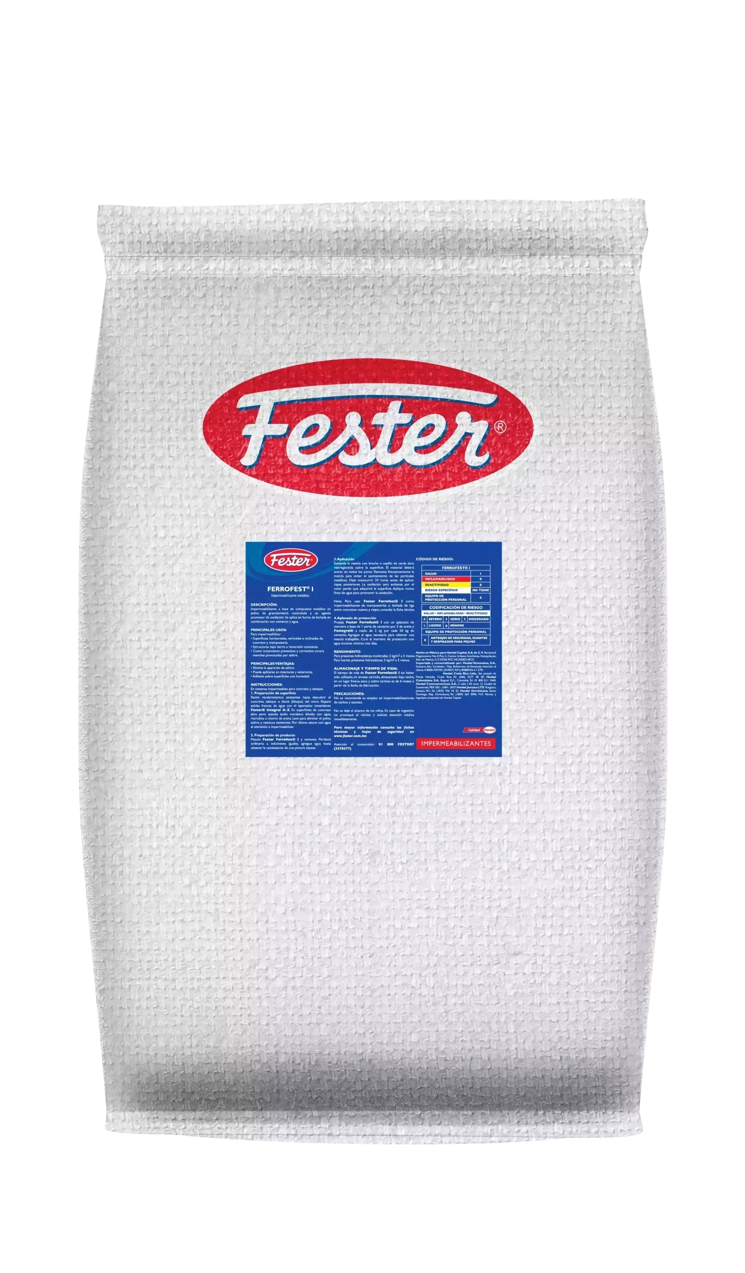 Impermeabilizante a base de compuesto metálico en polvo, de granulometría controlada y un agente promotor de oxidación. Se aplica en forma de lechada en combinación con cemento y agua.
